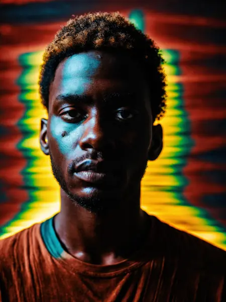 close-up couple's portrait,African young woman and man,clear skin face,looking at camera,fashion photography,simple background