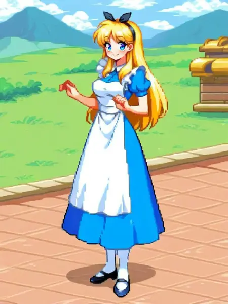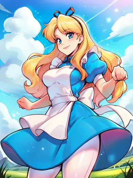 Alice 是来自《爱丽丝梦游仙境》的著名迪士尼角色。使用关键词“(AliceWaifu)”可获得更精确的结果。