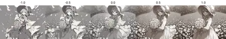 V1의 경우, 높은 가중치에서 일부 기괴한 효과가 나타나는 경향이 있으므로, 부정적 프롬프트에 "realistic"과 "3d"를 포함하는 것을 권장합니다.