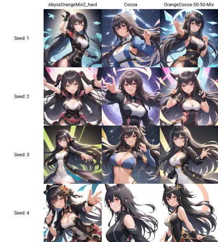 이 체크포인트는 AbyssOrangeMix2_hard와 Yohan Diffusion의 Cocoa를 각각 50%씩 혼합한 것입니다. 제가 몇몇 사용자들이 이 조합이 훌륭한 결과를 만들어낸다고 언급한 것을 보았지만, 실제 사용을 위한 파일을 공유한 사람은 없었기 때문에 제가 직접 공유합니다!