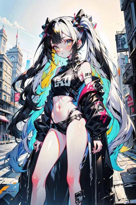 [风格+颜色] 它生成具有CMYK色彩色调的图像。同时,意外地创造出一种风格,使角色看起来更二维化,眼睛更大、更鲜艳,尤其是在特写镜头下。