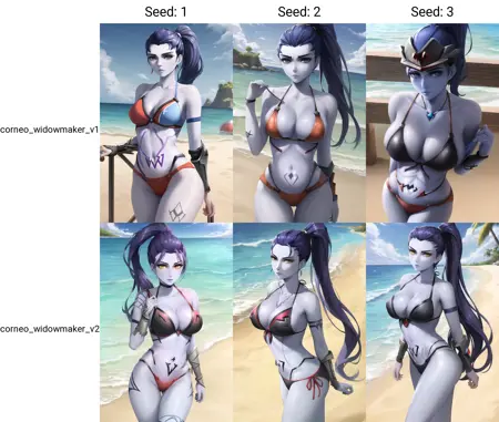 Use corneo_widowmaker to activate. The eyes aren't that great with this embedding by itself (but it was a request so I want to release it anyway), so I recommend detailing the face a bit more in your prompt. Also as with most characters with different skin colors, the skin sometimes changes back to flesh color so it's a good idea to put blue_skin with some emphasis in your prompt.