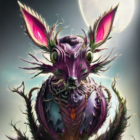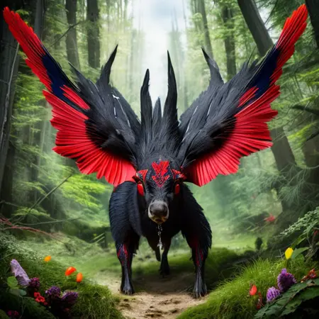 It was a creature of un-mythical origins, imbued by the forest itself. Its body was sleek and agile, with fur the color of a moonless deep blue midnight sky and eyes that glowed like embers in the darkness. But what truly set it apart were the petals that bloomed from its back, opening and closing like a flower that only blossomed at night.
