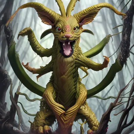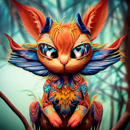 미신의 뿌리 없이 태어난 존재였다. 숲 자체가 그 생명을 주었다. 몸은 날렵하고 민첩했으며, 어둠에 잠긴 깊은 푸른 하늘 같은 털과, 어둠 속에서 붉게 빛나는 재처럼 찬란한 눈을 지녔다. 그러나 진정으로 그를 특별하게 만든 것은 등 뒤에서 피어나는 꽃잎이었다. 마치 밤에만 피어나는 꽃처럼, 꽃이 열리고 닫히는 움직임을 보였다.