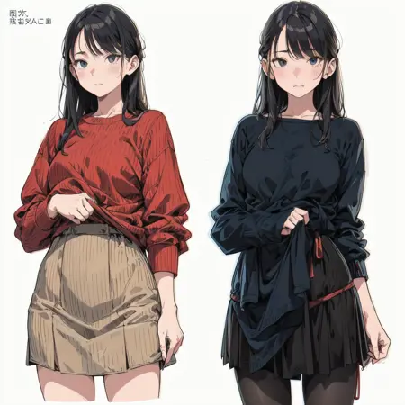 위 프롬프트를 사용할 경우, 캐릭터가 종종 연필/스케치/종이를 들고 있고, 그림 도구가 이미지에 자주 나타나는 것을 발견할 수 있습니다. 이는 사용한 태그 때문이며, 현재까지 이 문제를 해결할 방법을 찾지 못했습니다.