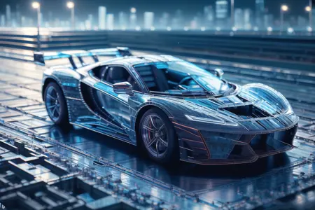 关于: 这个 LoRA “GlassTech” 的目的是影响或改变最终图像的整体风格,使其完全进入一个依赖于:玻璃、玻璃电路、合成玻璃、玻璃纤维……的维度。