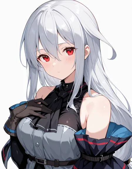 skadi (arknights), 非常に長い髪、低く結んだ長い髪、灰色の髪、赤い目