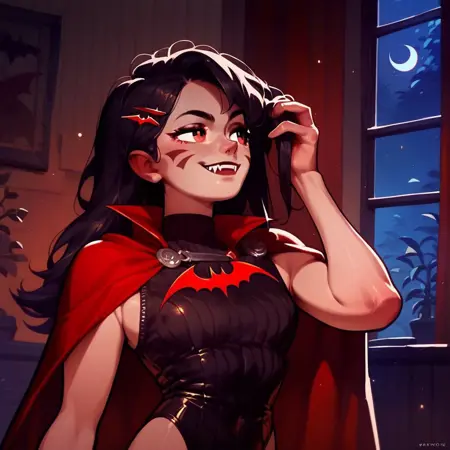 제가 그녀를 프롬프트하는 동안, 제 여동생의 캐릭터를 구체화하려 했습니다. 반면 여동생은 제가 만든 것을 보여줄 때까지 그걸 거의 잊고 있었습니다. Sickle(우리가 캐릭터를 만들며 지은 이름)은 사제의 은밀한 흡혈귀 사냥 생애 동안 끊임없이 대립해온 흡혈귀입니다. 그녀는 매우 오래되었지만, 오늘날의 많은 노인들과 달리 현대의 트렌드와 기술에 관심을 가지고 있습니다. 저는 그런 캐릭터를 만들고 싶었습니다. 왜냐하면 '고통받는 불사자'라는 이야기에 싫증이 났고, 수 세기 동안 정신적으로 살아남는 인물로 그녀를 그려보고 싶었기 때문입니다. 결국 제가 살아가며 만난 노인들 중에서 시대에 발맞춰 활동하는 사람들이 더 행복하고 건강해 보였기 때문이죠. 하지만 그녀가 흡혈귀라는 점을 고려할 때, 그녀의 현대적 관심이 성격의 일부인지, 혹은 심리적 방어 기제인지에 대한 해석은 여러분에게 달려 있습니다.
