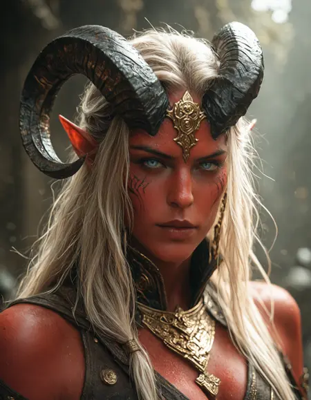 "masterpiece, best quality, amazing quality, very aesthetic, high resolution, absurdres, newest, photorealism, realistic,, 1boy, man , male, Close up portrait of an ancient blue-skinned tiefling with golden accents, blue skin, he has long hair and beard and horns on his head, in the style of fantasy art, cinematic, octane render, hyper detailed, volumetric lighting, cinematic shot, in the style of artstation. hkevil"