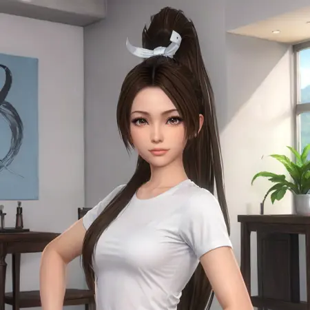 maishiranuidoa5lr, 1woman, solo, long hair, ponytail, high ponytail, hair ribbon...... lora:maishiranuidoa5lr:0.7(0.5~0.7,自行决定)......