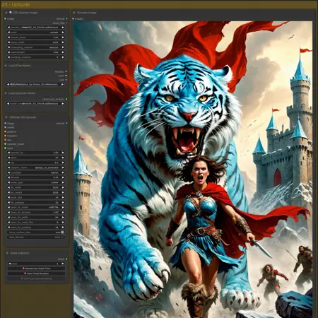 顔のディテールを完了したら、必要に応じてアップスケールできます。この段階では、別のモデルを選択してアップスケールすることも可能ですが、そうでない場合は同じモデルを選択してください。