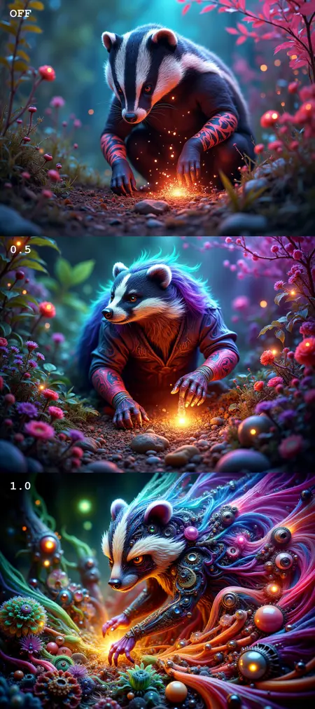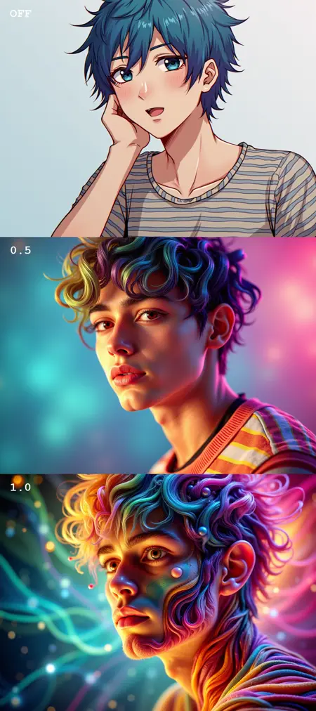 Flux detailer or stylizer LoRA with its own style. Has good flexibility and prompt adherence. Works great as a companion LoRA together with other LoRAs.