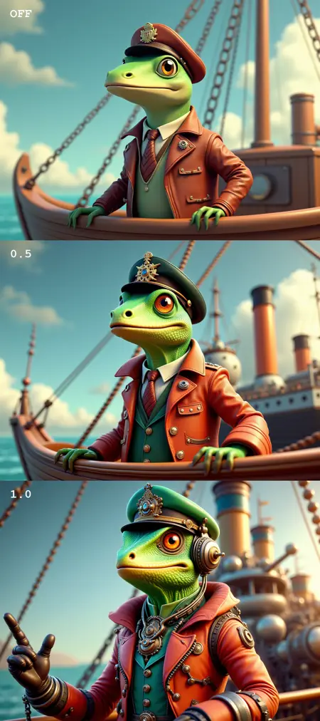 At weight 1 it can do its own thing, but depends on the prompt. For a more subtle effect play around 0.3-0.6