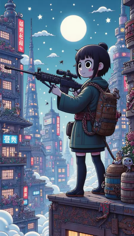 若想增强平面感和动漫风格,可以在提示中使用类似 An anime illustration of 的描述。