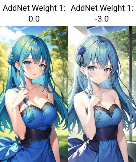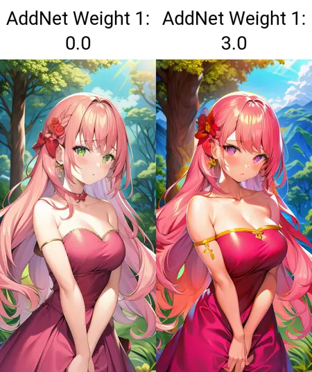 The recommended weight is about -3.0~3.0. The higher the weight is, the more colorful the images will be. (while the negative weight can decrease the saturation)