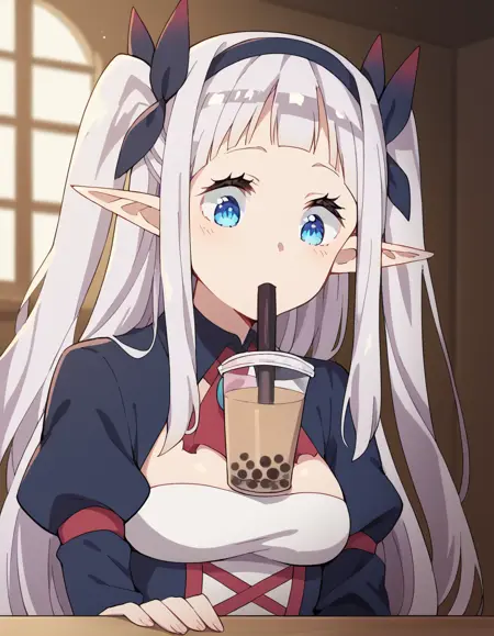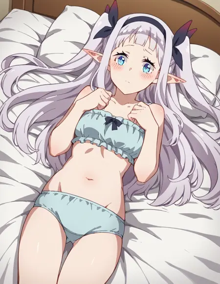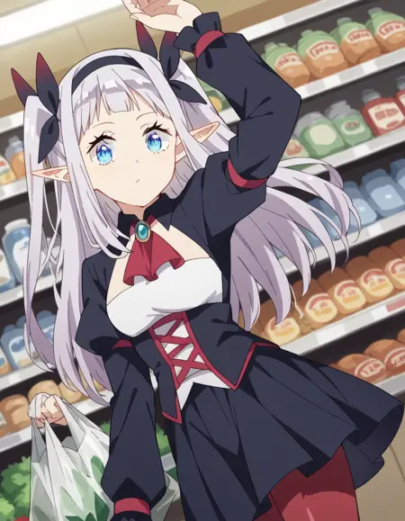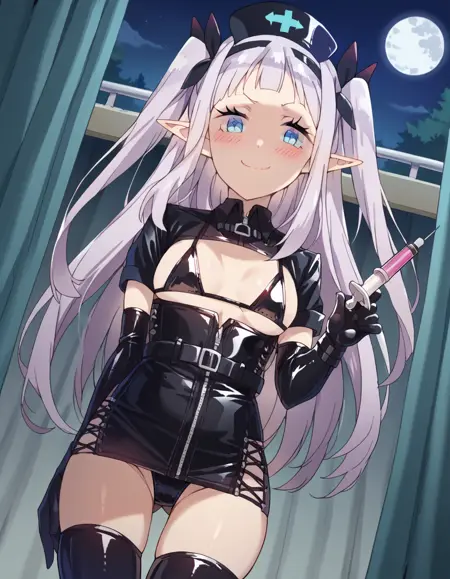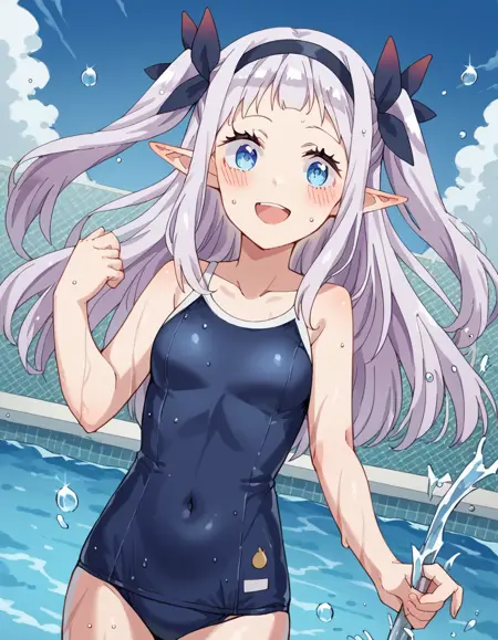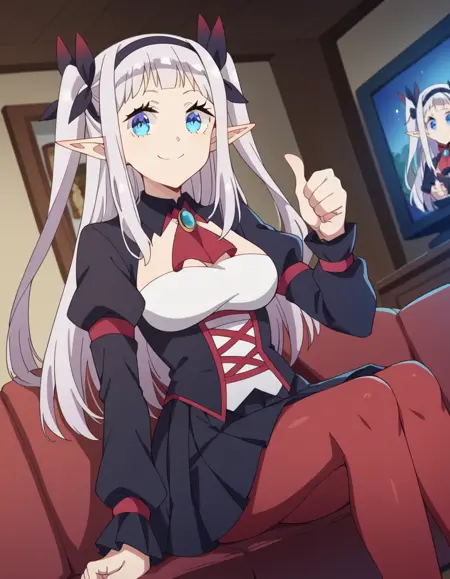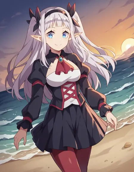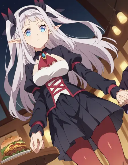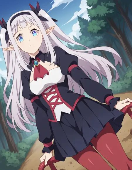 lora:rurushi-ru-s1-ponyxl-lora-nochekaiser:1, rurushi ru, 긴 머리, 파란 눈, 헤어밴드, 뾰족한 귀, 양쪽 위로 올린 머리, 흰 머리,
