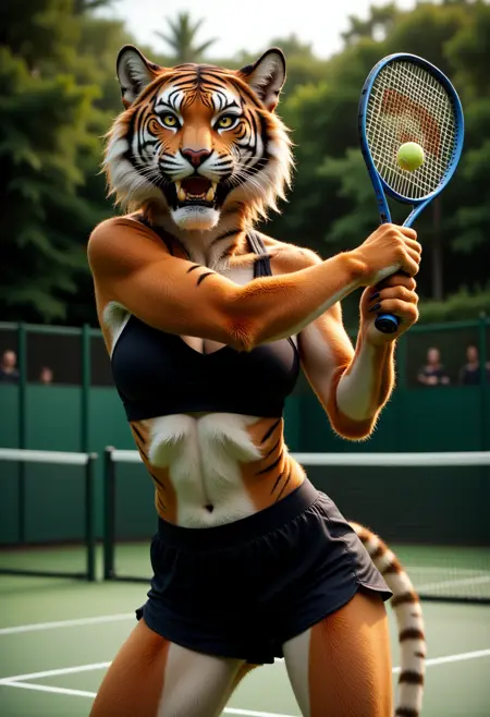 フューリーなキャラクターを生かすための他のモデルも存在します(FLUXのこの分野における多くの制限も含めて)が、以下の例に示すように、このモデルは自然なプロンプトで、あなたのフューリーな創作に美しい半現実主義のスタイルをもたらすはずです: