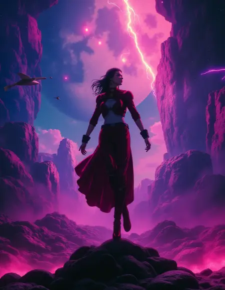 "SuicideSquadIsekai, a vibrant landscape where floating islands drift among swirling clouds, with luminous flora that glows in neon colors. "