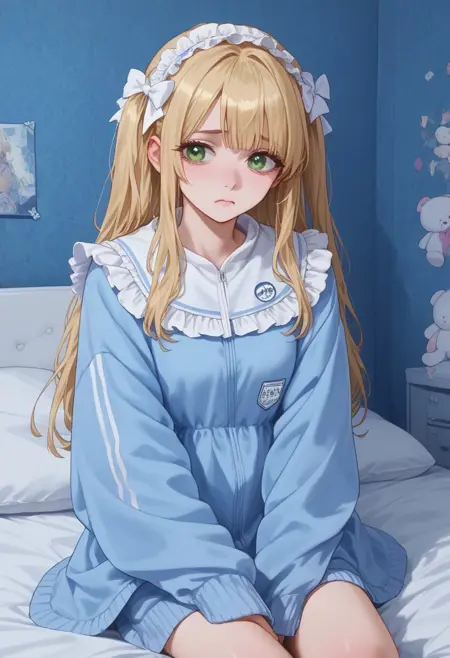 「水色」または「天使かいわい」は、薄い青と白のカラースキームを特徴とする日本のストリートファッションです。一般的な装飾要素には、雲、翼、ふわふわしたアイテムが含まれます。服装は通常、マスク、オーバーサイズのフーディー、短いショートパンツ、サスペンダーまたはベルト、ルーズなソックス、プラットフォームシューズで構成されます。