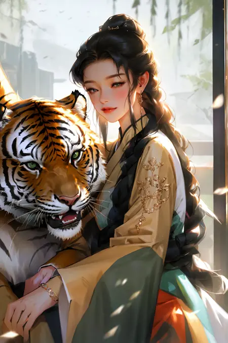 前バージョンと比べ、しなやかな線の描写を維持しつつ、更に厚塗りの質感も表現できるようになりました。しかし、手の描画が一向に改善されていないように感じます。今回のLoRAの訓練データには、シーンや動物なども追加され、以前のようにたびたび龍が出現するといった問題は軽減されています。