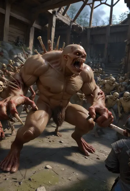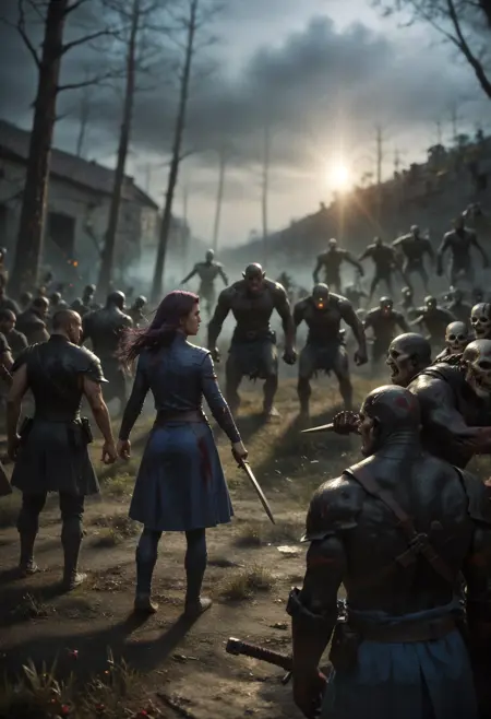 このLoRAの学習ではいくつかのミスを犯しました。元々は人間と対峙する大規模な未死の軍隊を再現することを目的としていました。