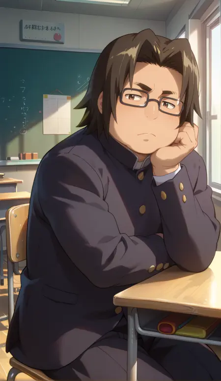 hirano_kohta, brown eyes, black hair, male focus, glasses, school uniform, black gakuran, buttons,