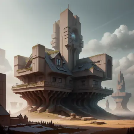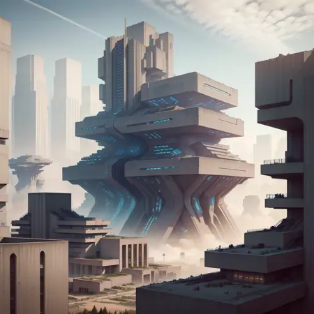 このLoRAは、ブリタリズム建築スタイルに基づいて学習されており、あらゆるデザインの基盤にこのスタイルが使用される世界の可能性を探求しています。