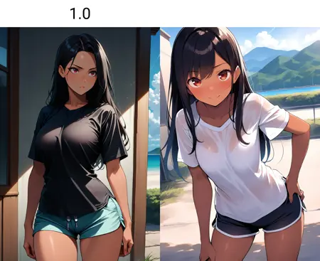重みは0.5から1まで調整可能です。あらゆるキャラクター、コンセプト、フォトリアリスティックモデルで使用できます。このスタイルは2D、2.5D、3D、フォトリアリズムの間に位置し、髪の毛、体、静脈のディテールを強化します。tanとtonedは注意して使用してください。