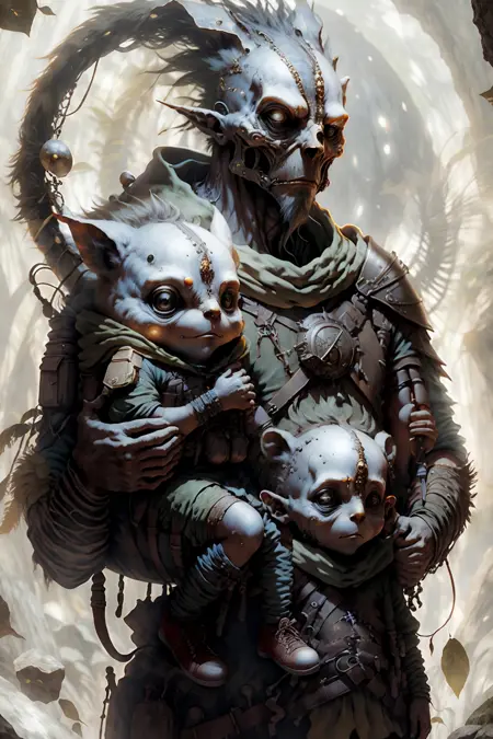 プロンプト: creature00d, Parent, Adventure pose, lora:creature00d-000010:1