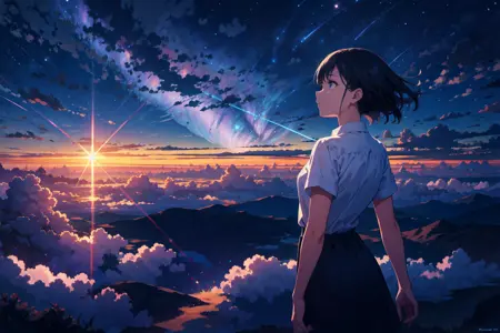 높은 대비의 강력한 애니메이션 스타일 일러스트를 생성할 수 있습니다.