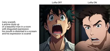 You can also mark it by adding "very" to the expression in brackets, and with additional tags to add after the caption, such as "open mouth", "scream", "smile", "laugh", "terrified" etc.