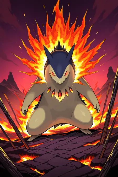 Typhlosion: Volcano Pokémon | バクフーン (Pokedex #0157) [Illustrious & Pony]