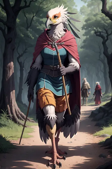 タグ「secretary bird」と使用してください。その他に「winged-arms、beak、anthro」もおすすめです。