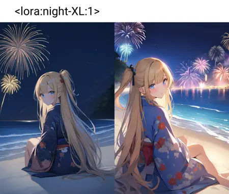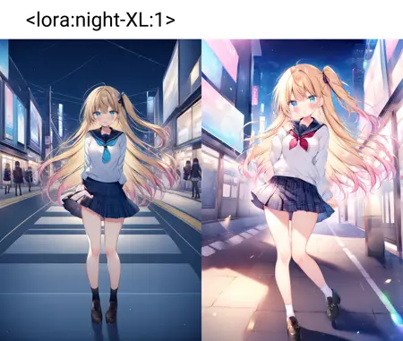 此模型在影响色调的同时能尽量抹除光源,用以生成正确的黑夜。加上night即可。