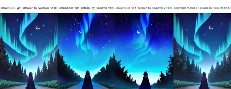 V1.0 - slightly alters image giving more details. Weird interaction that I found - it darkens dark. V-pred NOOB-AI is first SDXL model that I see that can make really dark imagery. ESPECIALLY with short prompts, like 1girl, dark, night. If you are feeling that that is not what you want - just be more descriptive. describe face, vlothes and you won't get those black on black silhouettes anymore. Btw that applies to the NOOBvp1 itself too. See example here: https://civitai.com/images/47951726