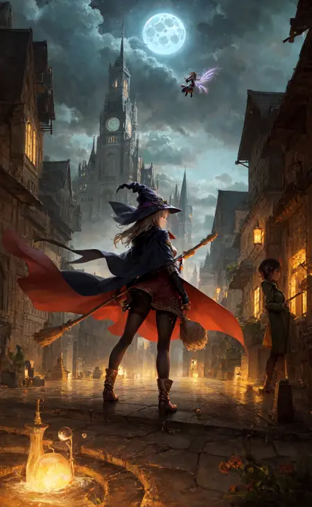 特点:油画风格的艺术插画,以及精致的背景描绘。实际上这主要得益于 Counterfeit 2.5 的贡献,而 U-Net Blocks Weight Merge 则进一步提升了纹理的真实感。
