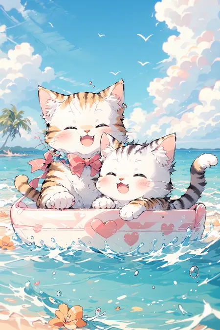 推荐的大模型:Ghost非常好,手脚崩坏的几率也比较小,画风也很可爱;搭配Majic会呈现写实效果,搭配Meina V9则是非常棒的二次元猫猫插画风格;如果想获得一点梦幻感,可以用我的Irise大模型(需外挂Pastel VAE)。例图能够正确读取tag,大家可以尝试一下。