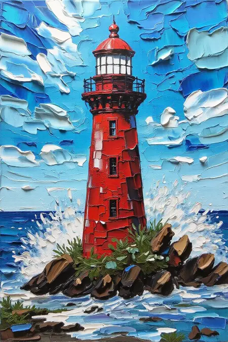 Thick Paint Application: Paint is applied so thickly that brushstrokes or palette knife marks are clearly visible.