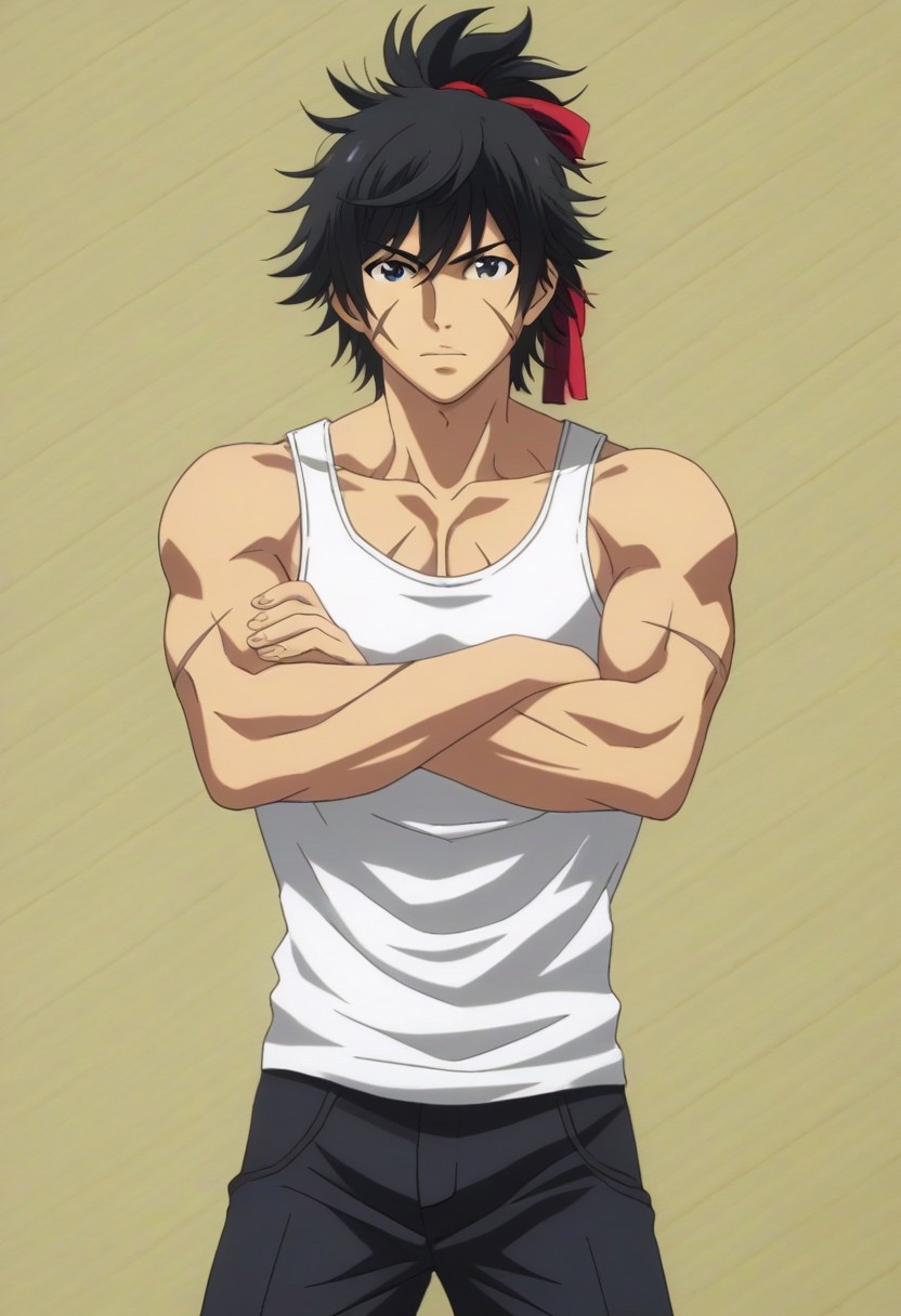 | 训练词汇 | Jackal, blonde hair, animal ears, yellow eye, slit pupil, hair over one eye, face spots, short scarf, green shirt, sleeveless, black hands, black arm marks, gray jacket around waist, white baggy pants, yellow tail已复制! Jackal, blonde hair, animal ears, yellow eye, slit pupil, hair over one eye, face spots, long black scarf, shirtless, chest mark on right side, white gloves, elbow gloves, fingerless gloves, gray jacket around waist, black baggy pants, yellow tail已复制! Keiichiro Tokugawa, black hair, messy hair, bushy hair, ponytail, hair ribbon, black eyes, face scars, fur hood, arm bands, vambraces, blue pants, greaves, sandals已复制! |