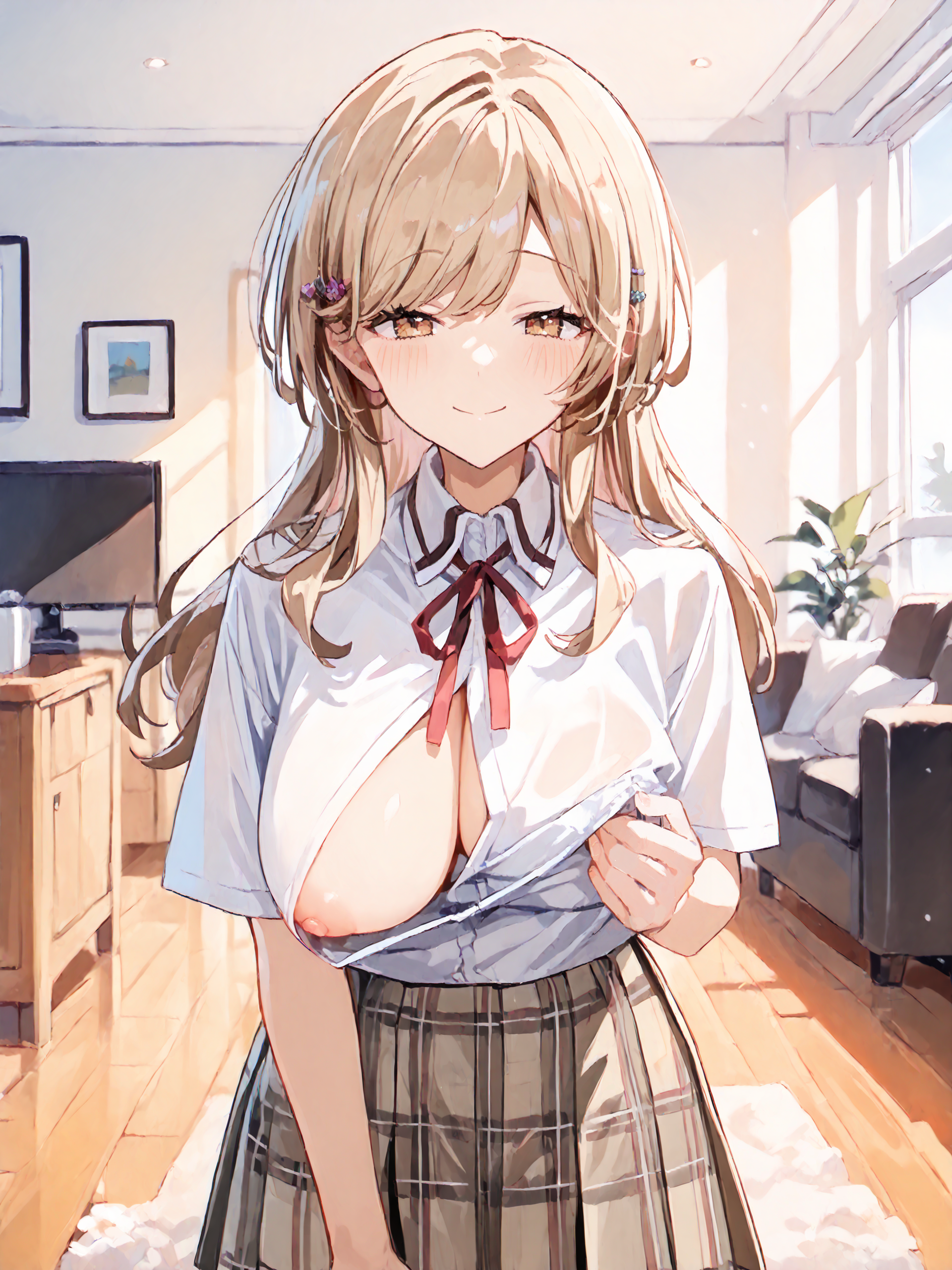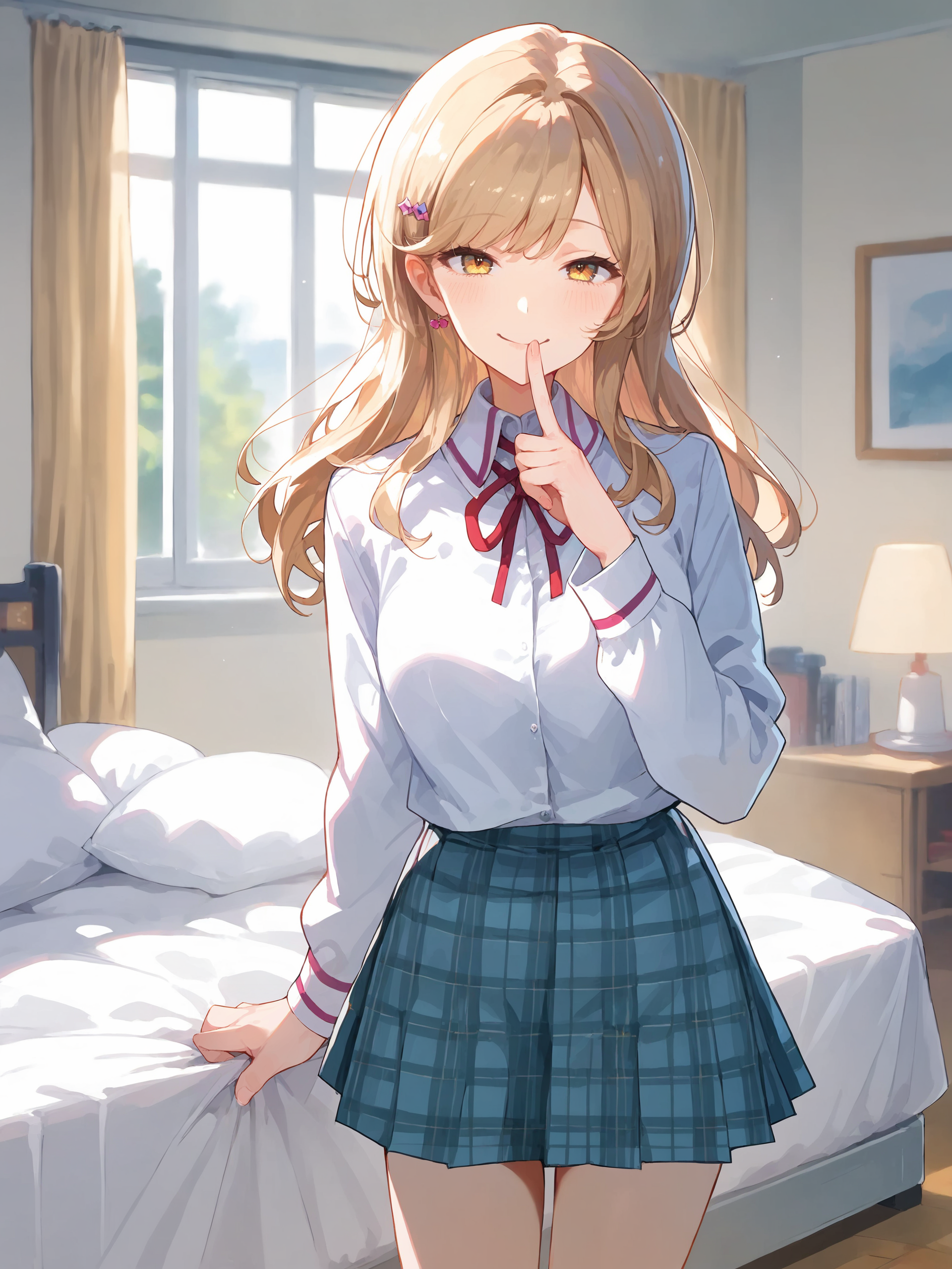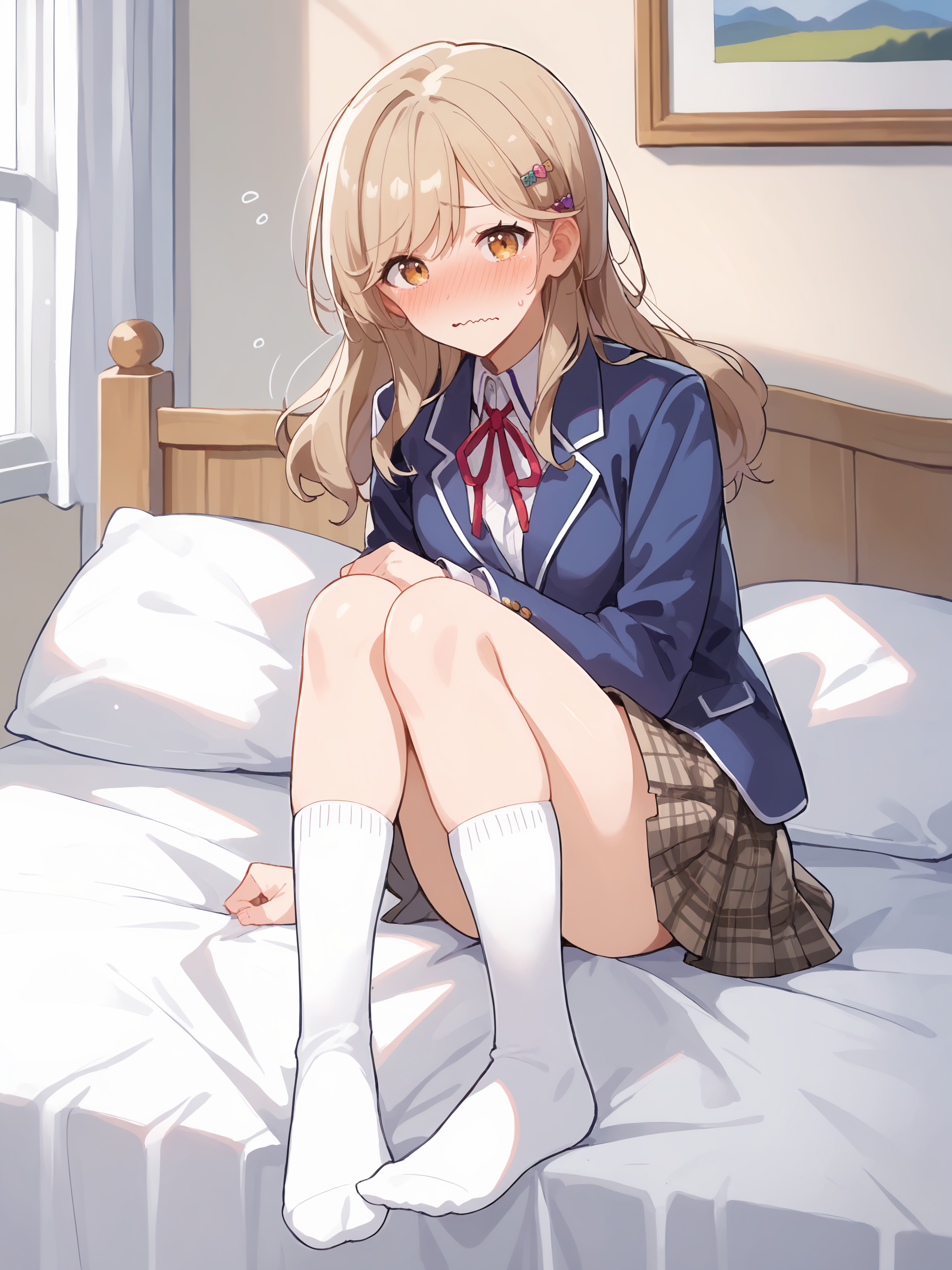 默认女高中生服装的附加提示:校服、百褶裙、格子裙、白色衬衫、领结、乐福鞋、白色袜子