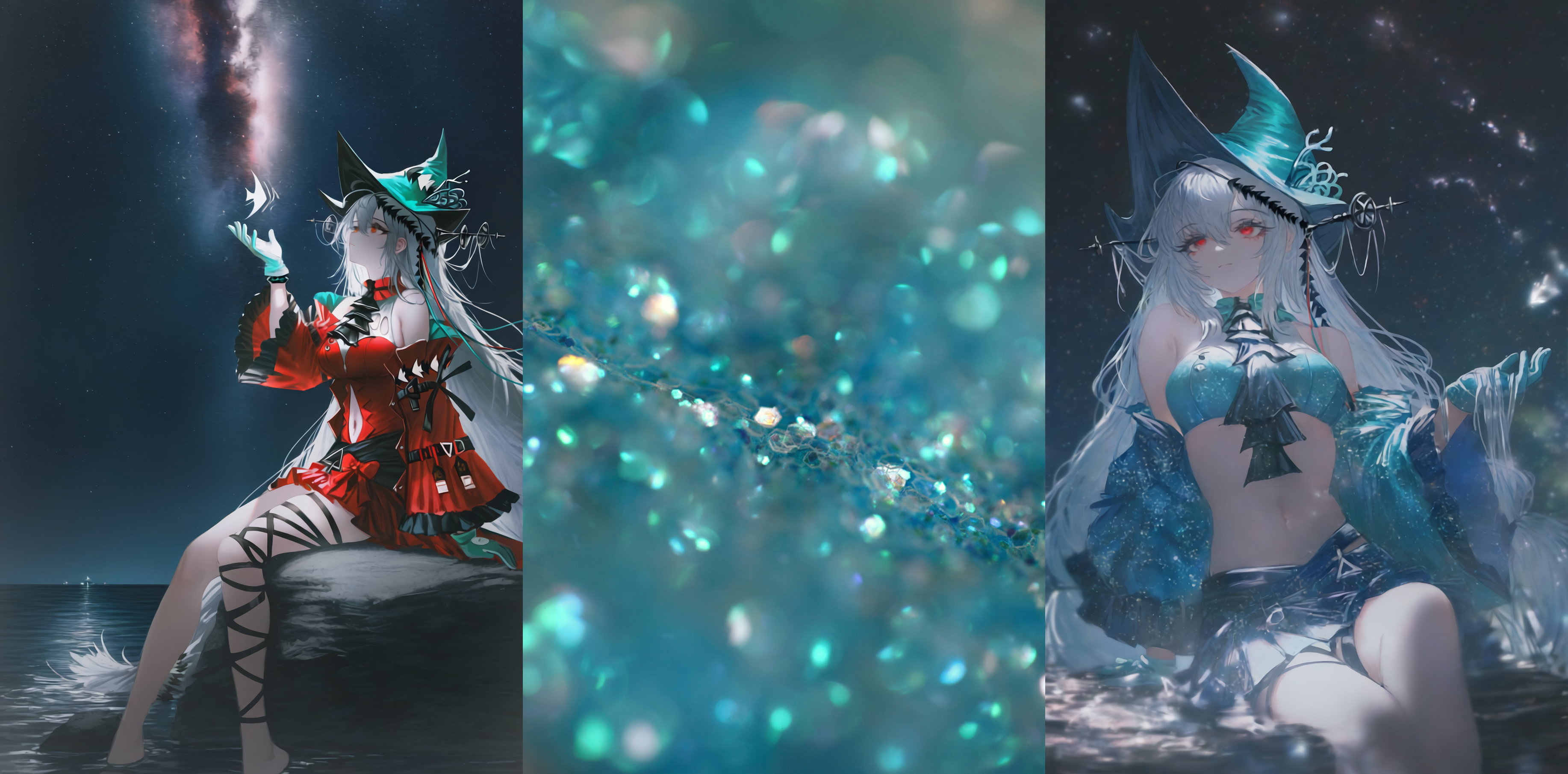 표준 아키텍처 버전의 Noob IP-Adapter를 공식 IP-Adapter로 학습하면, 참조 이미지의 요소를 텍스트 프롬프트와 결합하여 흥미로운 콘텐츠를 생성할 수 있습니다.