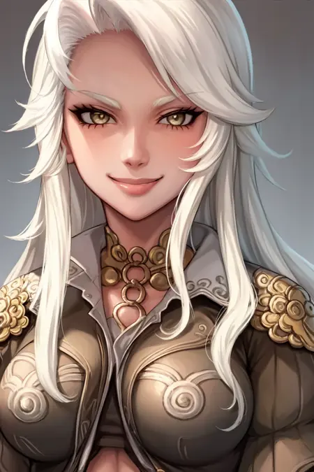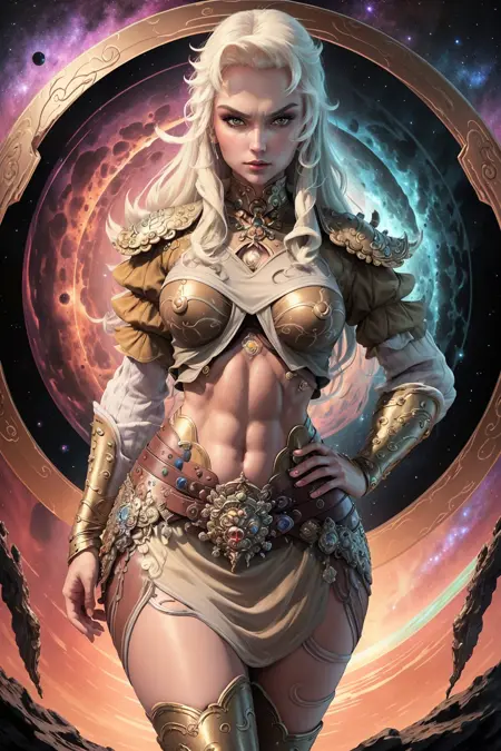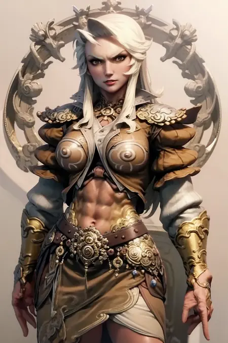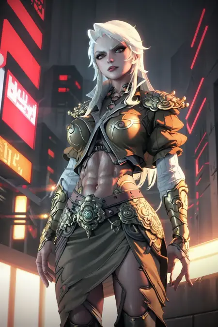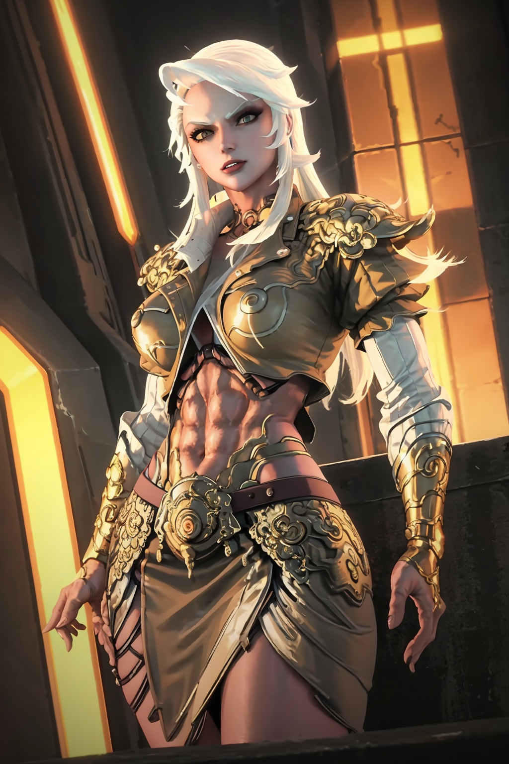 其他提示词:长发、白发、盔甲、肚脐、露腹