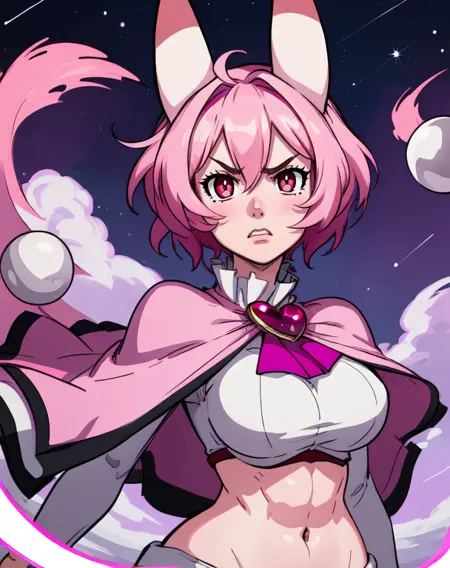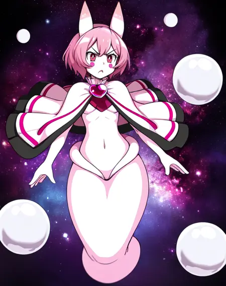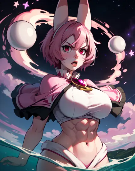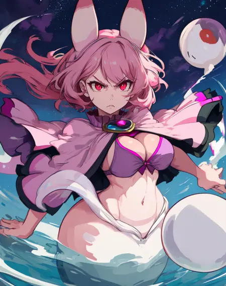 SeaAngel, 빨간 눈, 분홍색 머리, 분홍색 피부, 분홍색 뿔, 분홍색 캐프렛, 브로치, 배꼽