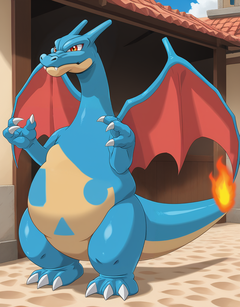 相关词:蓝色皮肤,黄色眼睛,橙色眼睛,棕色眼睛,明亮瞳孔,白色瞳孔,獠牙,尖牙,露出獠牙,尖牙外露,爪子,龙男孩,龙尾,火焰尾尖,火焰,火,展开翅膀,龙翼,绿色翅膀,红色翅膀,无人类,怪物男孩,宝可梦(生物),闪亮宝可梦