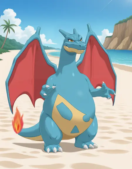관련 단어: 파란 피부, 노란 눈, 주황 눈, 갈색 눈, 밝은 동공, 흰 동공, 코니, 송곳니, 송곳니 드러냄, 발톱, 드래곤 소년, 드래곤 꼬리, 불꽃 끝 난 꼬리, 불, 불꽃, 펼친 날개, 드래곤 날개, 녹색 날개, 빨간 날개, 인간 없음, 몬스터 소년, 포켓몬(생물), 반짝이는 포켓몬