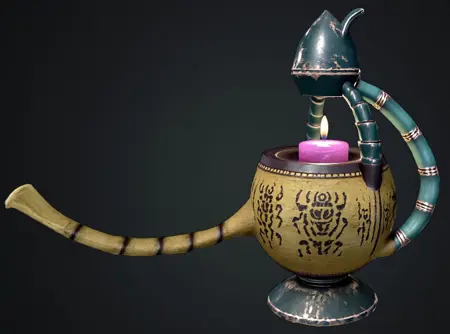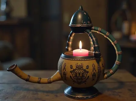 触发词: 顶部有华丽圆顶、中间有蜡烛的斯库玛烟斗。