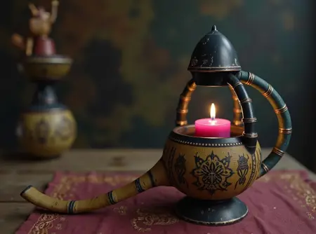 트리거: 상단에 장식된 돔과 중앙에 양초가 있는 스쿠마 파이프.