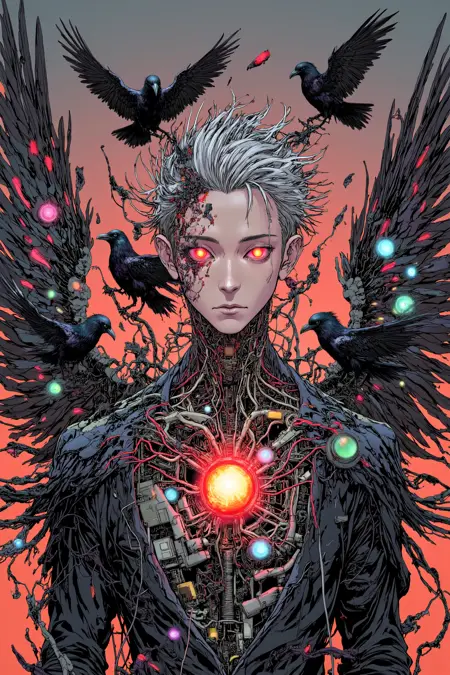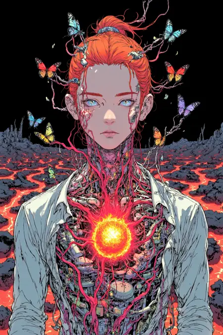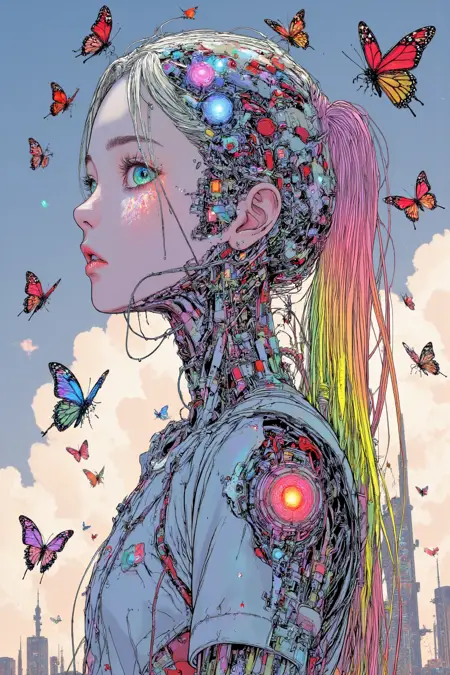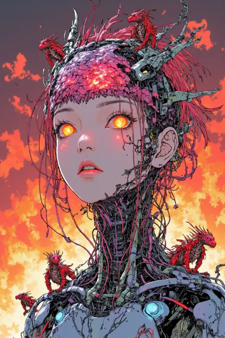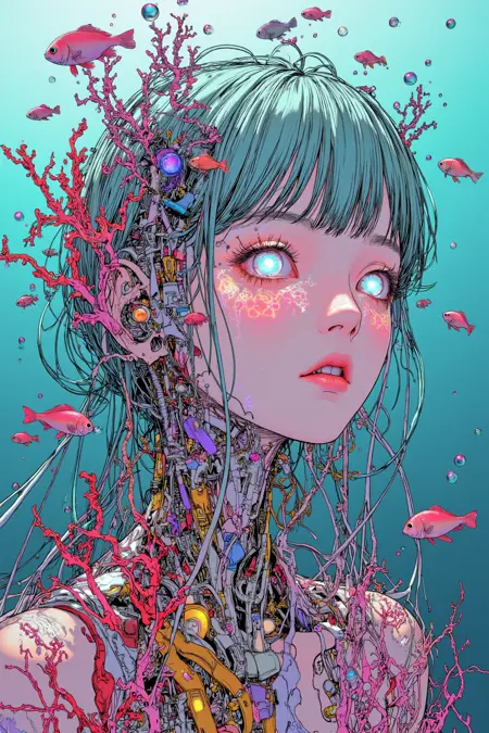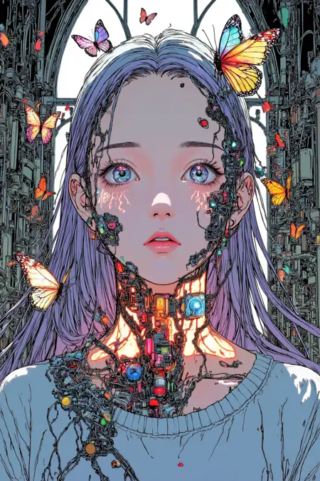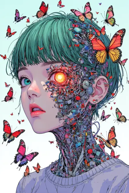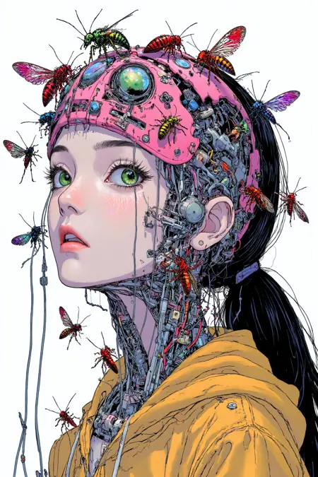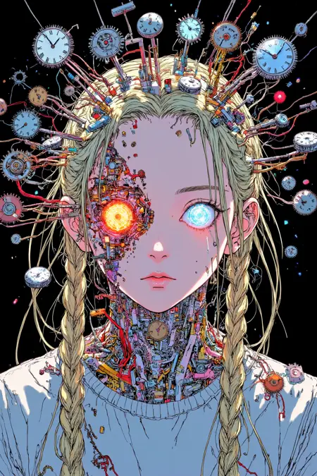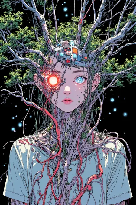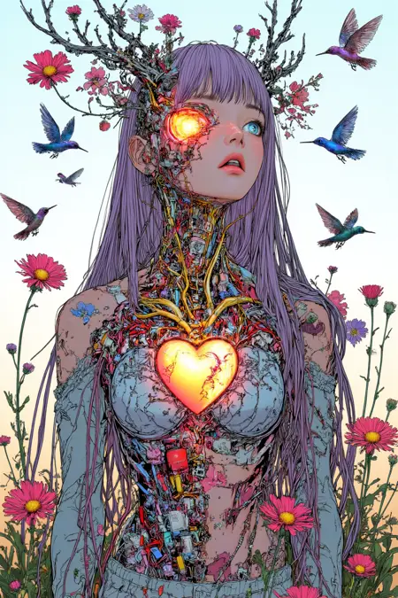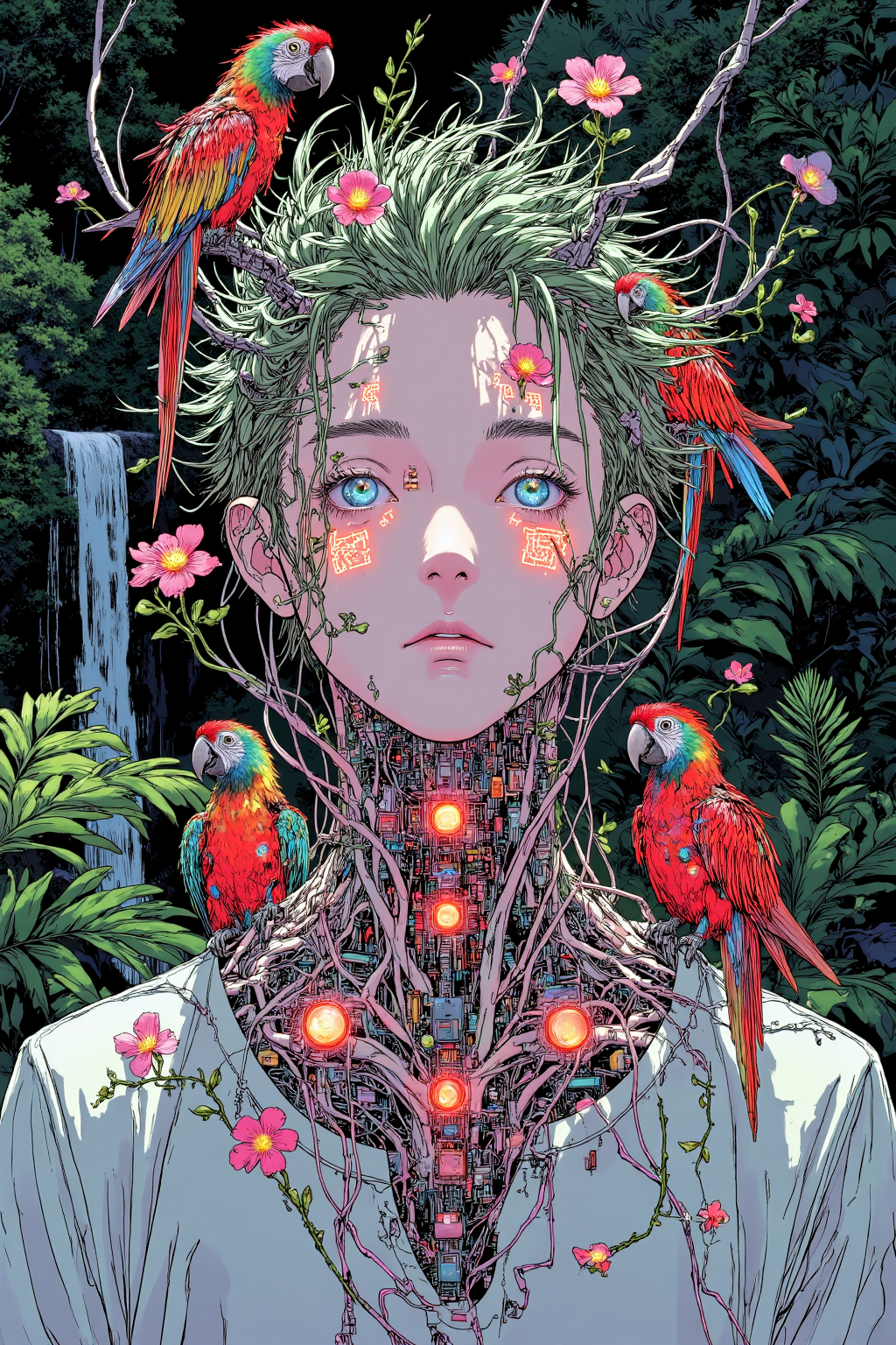 Flux.1_Mechanical Bloom · Surreal Anime-style Portrait