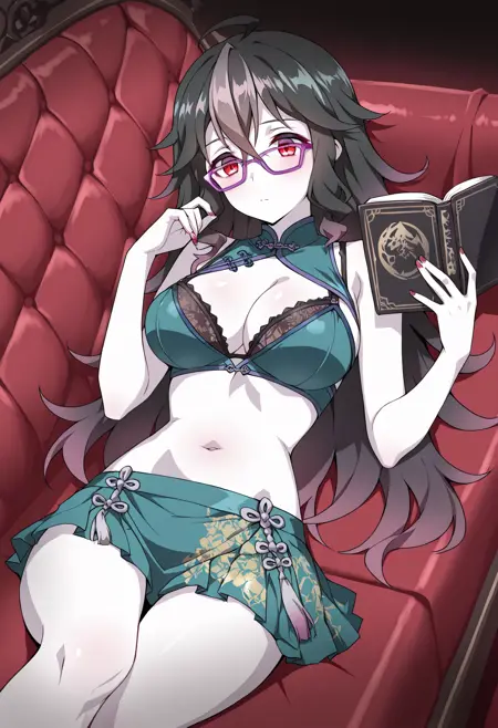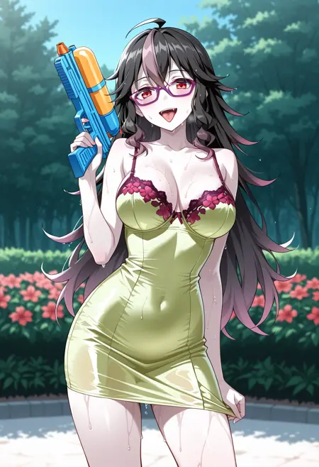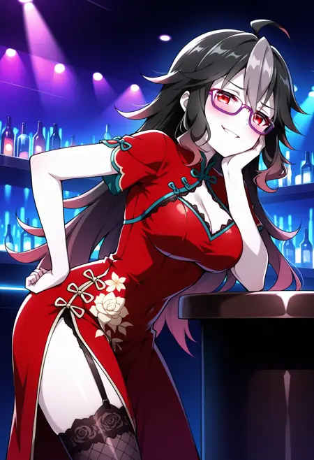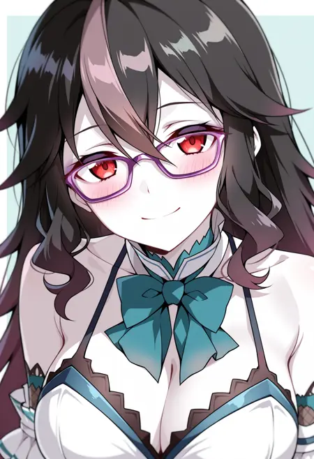 2. 紫框眼镜,眼镜,蝴蝶结,白色连衣裙,胸部暴露,可拆卸袖子,爪子,渔网丝袜,