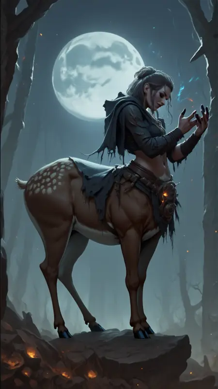 このモデルは、男性と女性のセントールを作成します。下部の体を「馬」または「シカ」としてプロンプトにすると最も効果的ですが、チーター、斑馬、キリンなど、他の動物にも対応できます。